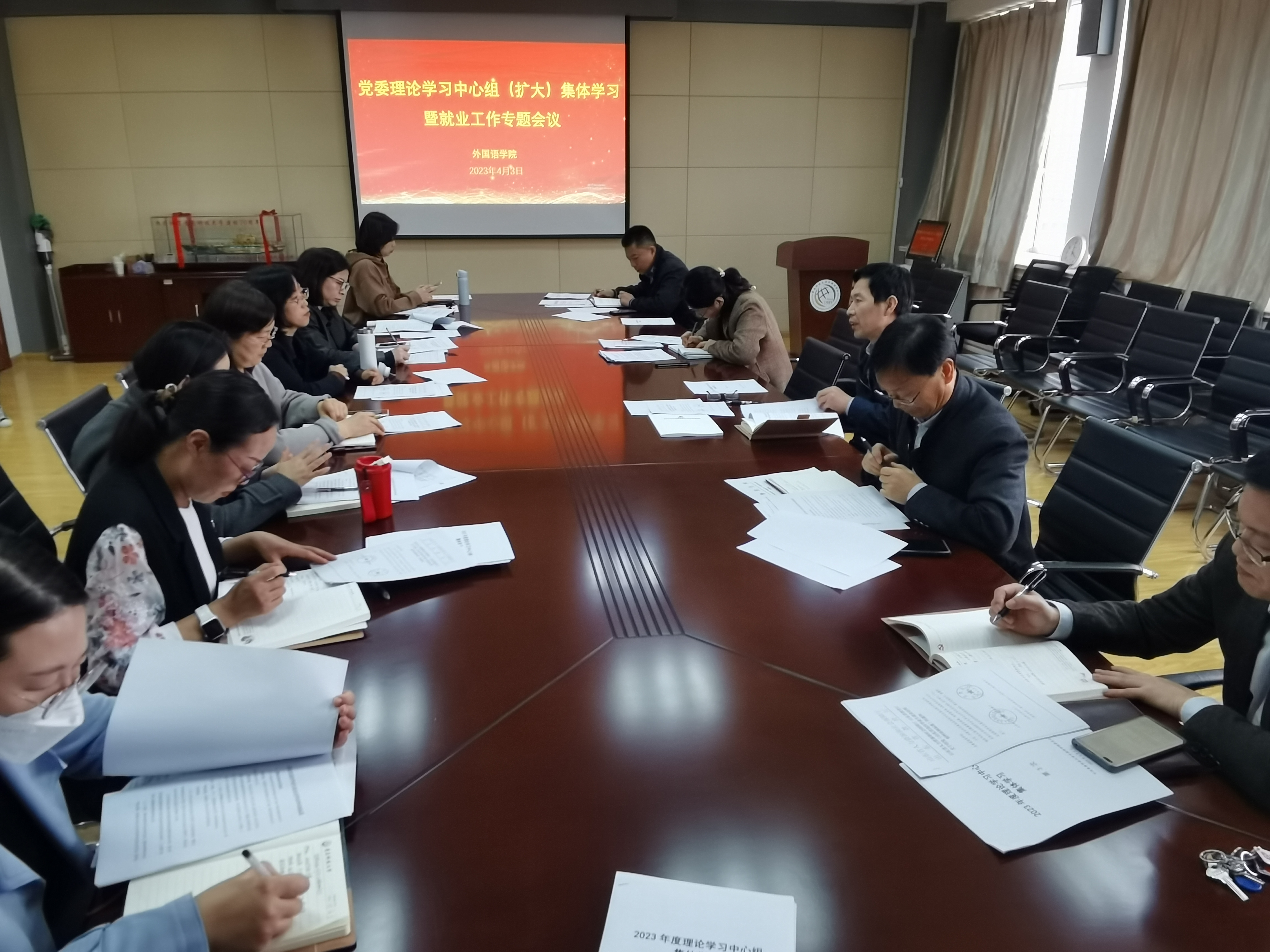 与会人员学习了二十大报告和2023年政府工作报告中有关就业的论述,院长尹洪山带领与会人员深入学习了滨海湾金沙赌场