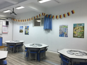 本专业全部课程都在语音室、多媒体教室和智慧教室进行。本系配有专用的多媒体语音教室,学生可在课前和课间收看实时转播的德国电视节目,多媒体设备可供学生在课堂上作报告使用,灵活放置的桌椅突破传统,优化课堂组织形式,方便教师指导学生进行小组练习和自主学习。外教的口语课均在智慧教室进行,其配备先进便利的设备,让口语实践课变得丰富有趣味,有非常好的教学效果。