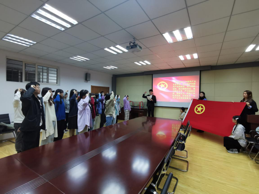 王晓琦带领研究生会成员及2019级本科生代表学习抗美援朝时期的历史并重温入团誓词。