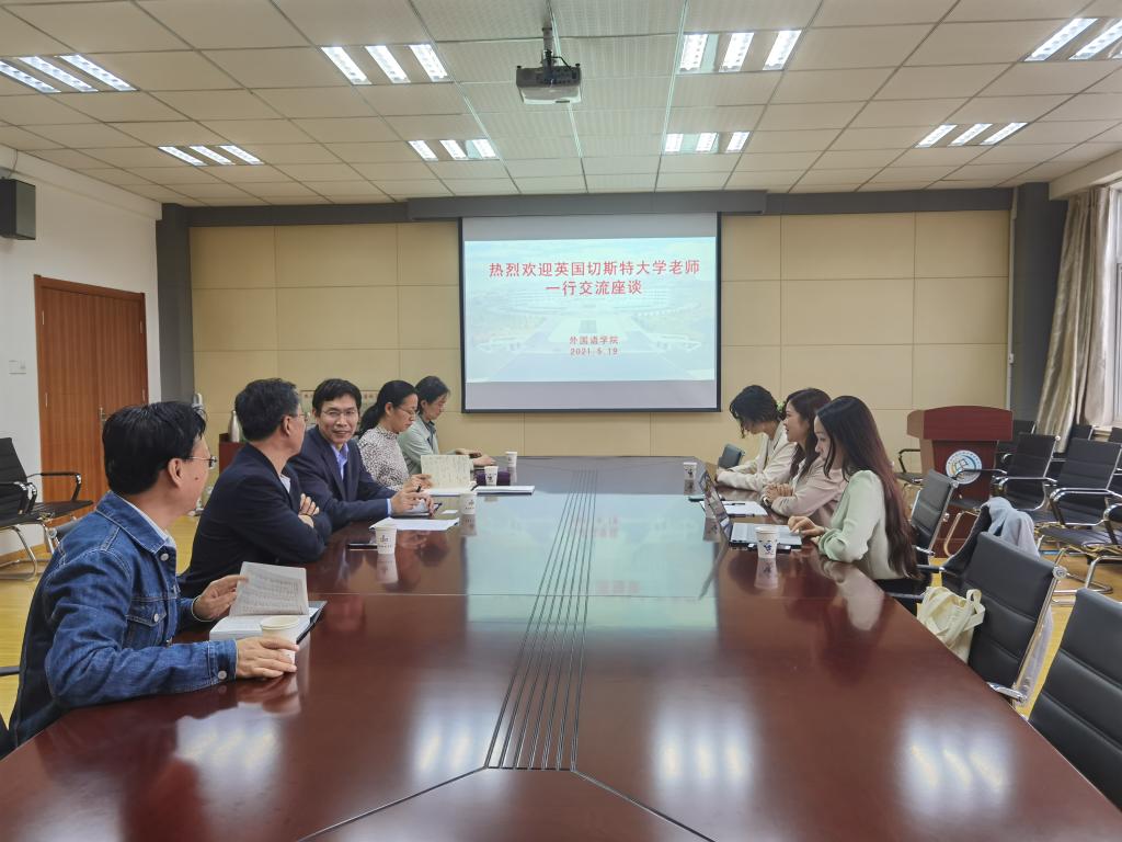 领导教师前往切斯特大学参观访问,并表示希望充分依托中外合作办学,为学生就业、成长成才提供一条便捷有效的途径,期待双方人才培养合作早结硕果。