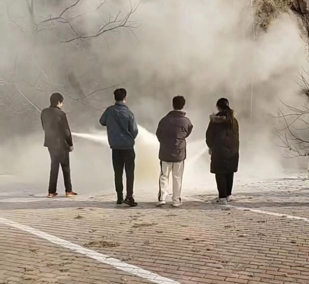 50名学生在北苑广场参加消防演练。
