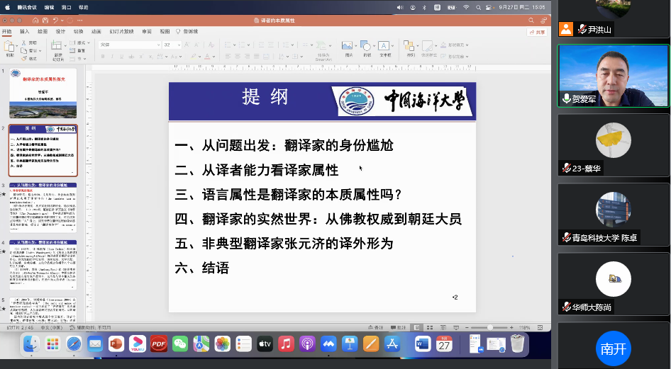 院长尹洪山对本次讲座做简要点评和总结。贺爱军教授的讲座高屋建瓴,观点新颖,开拓了译者研究的全新视角。讲座考证严密,资料翔实,脉络清晰,讲解深入透彻,贺教授对学术的热爱和严谨的学术态度深深鼓舞了在线师生,对滨海湾金沙赌场