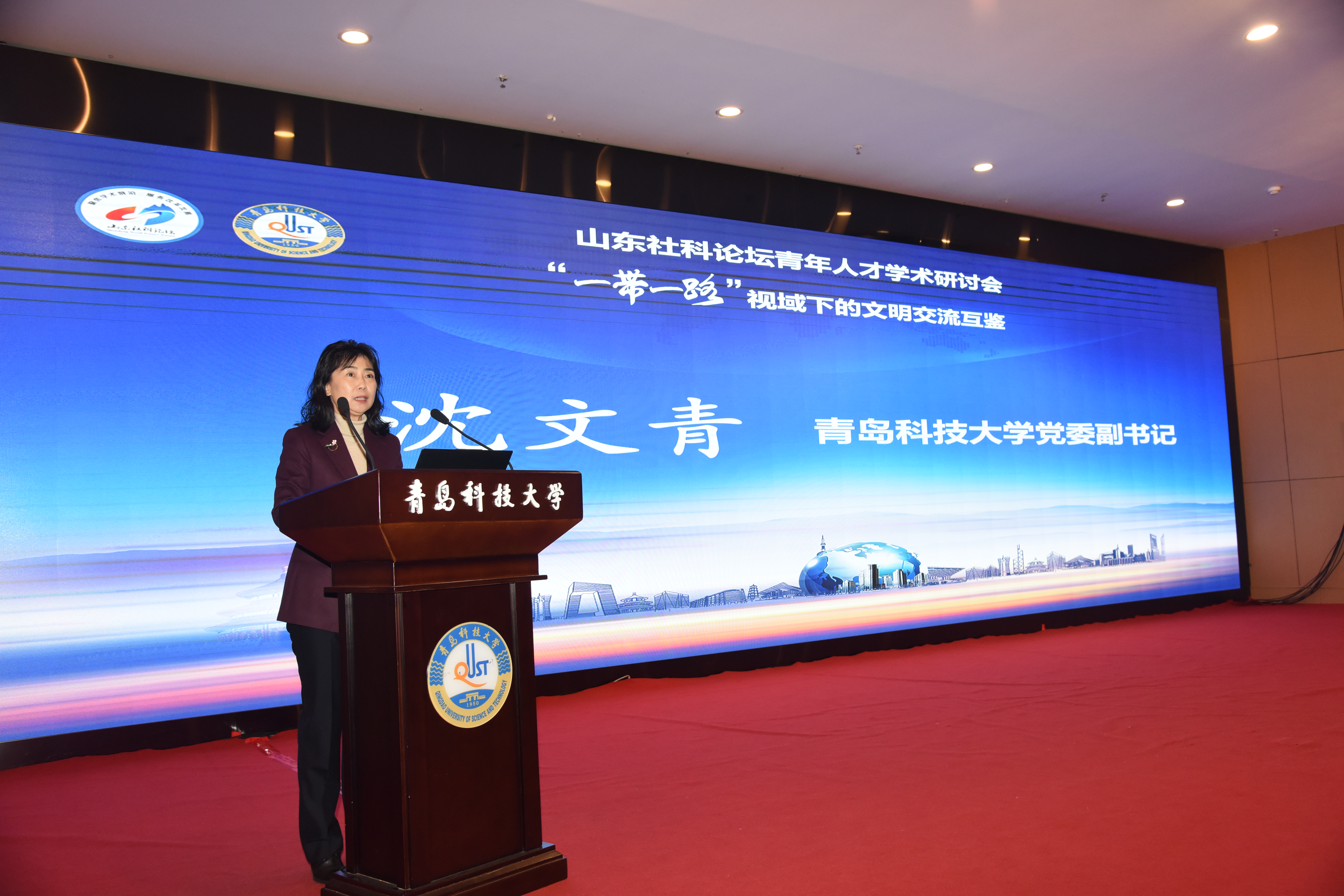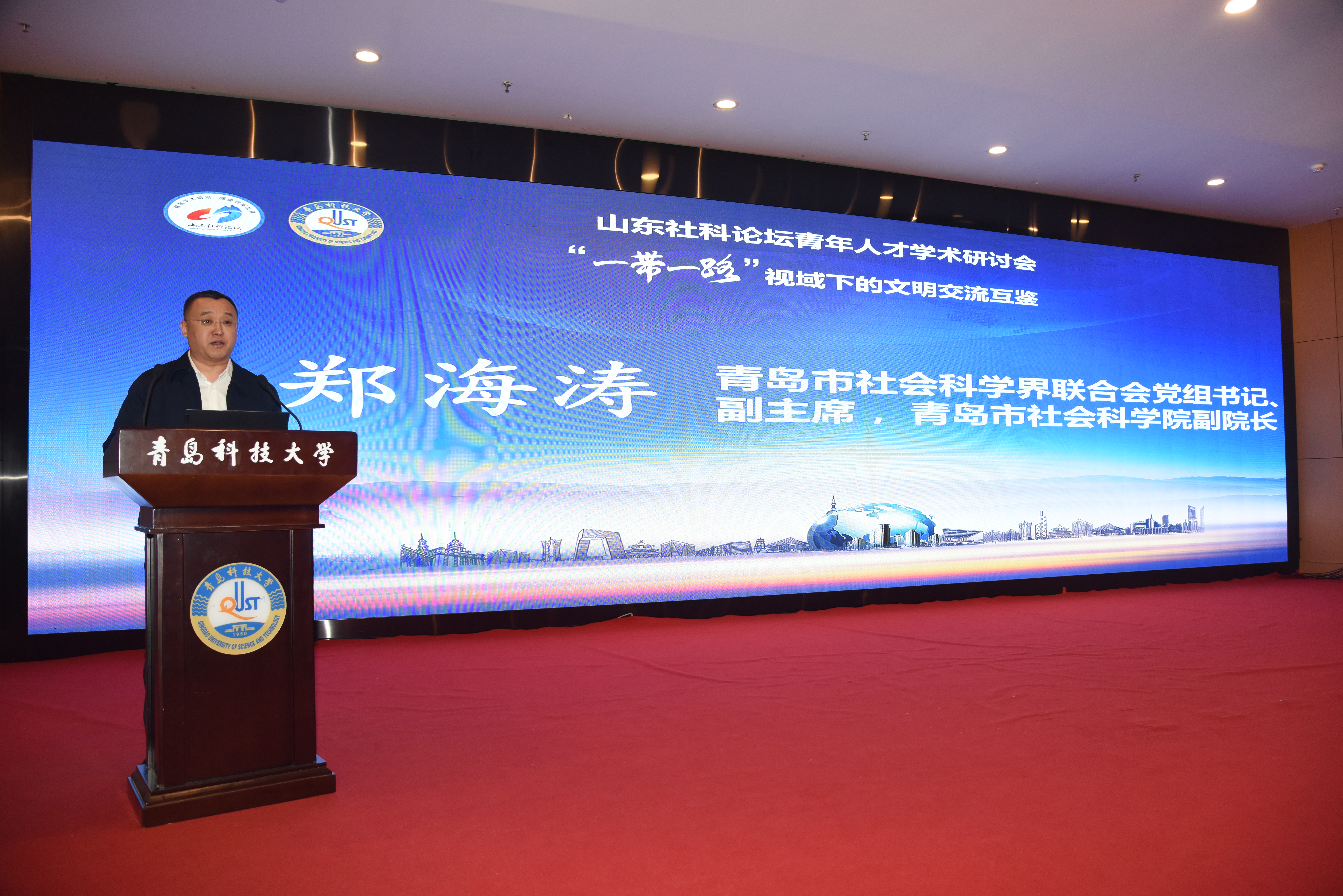 郑海涛在致辞中表示,青岛市社科联紧紧围绕本市经济社会发展重大实践问题,积极加强社科人才团队建设,深入开展学术研究,聚力打造“一带一路”国际合作新平台,本次研讨会立足实际,着眼未来,围绕“一带一路”深入研讨,对加强青年人才建设、构建中华民族现代文明具有重要意义。