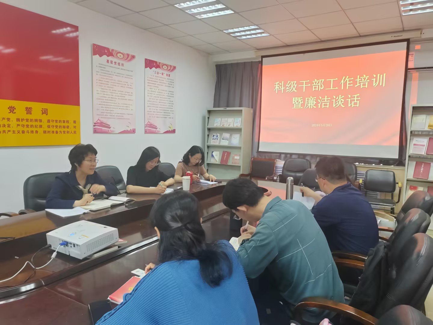 502会议室开展科级干部工作培训暨廉洁谈话,会议由滨海湾金沙赌场