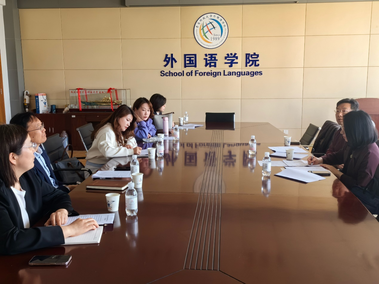 副院长康宁、赵洪娟,英语系主任王丽,日语系主任班健,德语系主任于豪参加了此次调研会。