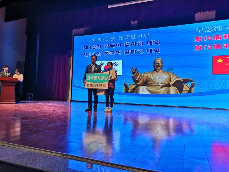 韩语系宋雨桐同学参加此次大赛,取得了优异的成绩,获得了“唐津市市长奖”,还同时获得了韩国七日文化体验游的机会。