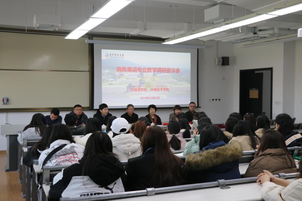 领导班子与中德校区四个班的同学进行了座谈,并就外语专业的前景、学习方向、就业方向进行了介绍和指导,旨在解决学生学习生活中的问题,破解职业生涯规划难题。