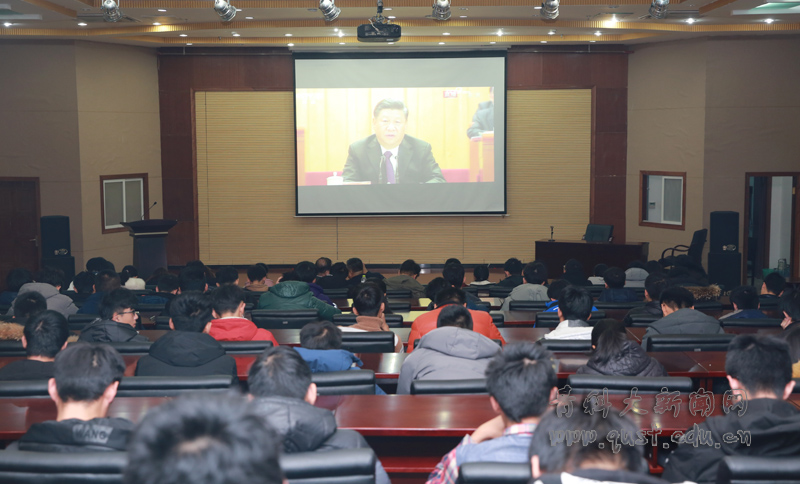 组织部分师生代表到第一报告厅与全校同学一起看庆祝改革开放40周年大会直播,通过多种形式组织师生代表收听收看。师生们纷纷表示,习近平总书记的讲话系统回顾了改革开放四十年的伟大成就,全面总结了改革开放的基本经验,向世界宣示了高举改革开放旗帜、把改革开放不断推向深入的坚定决心,是新时代改革开放再出发的宣言书和动员令,也为我们在新时代推进各项事业发展赋予了新的使命,我们一定要认真学习好、贯彻好、落实好讲话精神,坚持党的领导,不忘初心、牢记使命,为夺取新时代中国特色社会主义伟大胜利、实现中华民族伟大复兴的中国梦不懈奋斗。英语152班刘晓雨表示,中国坚持改革开放方针毫不动摇,以上下求索的勇气和气吞山河的豪气,书写了国家和民族发展的壮丽史诗,作为新时代的大学生,我将继续怀揣紧跟党走报效国家的初心,培养创新思维,练就过硬本领,让青春韶华在奋斗中结出胜利果实,不负新时代。