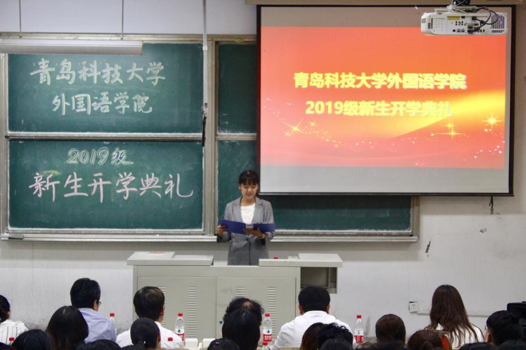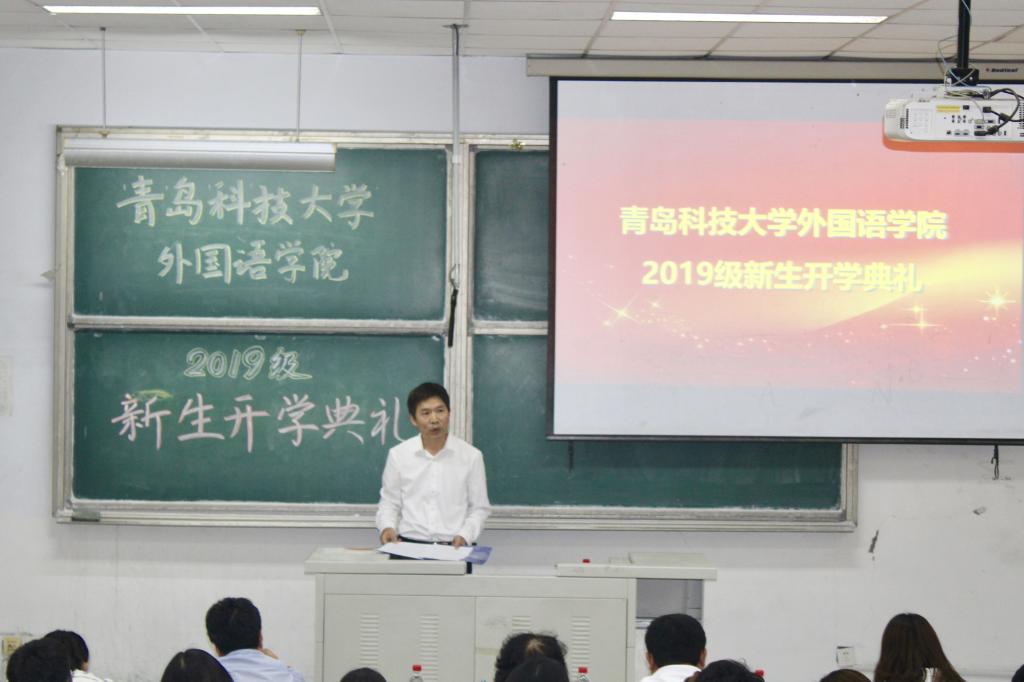 院长尹洪山,副院长任素贞、吕耀中,党总支副书记兼副院长宋飞,英语系主任杨晓梅,日语系主任王宁,俄语系主任曹静娴,韩语系老师毕信燕,德语系主任崔婕以及分团委副书记辛婷婷出席了本次开学典礼。开学典礼由分团委老师王雨昕主持。