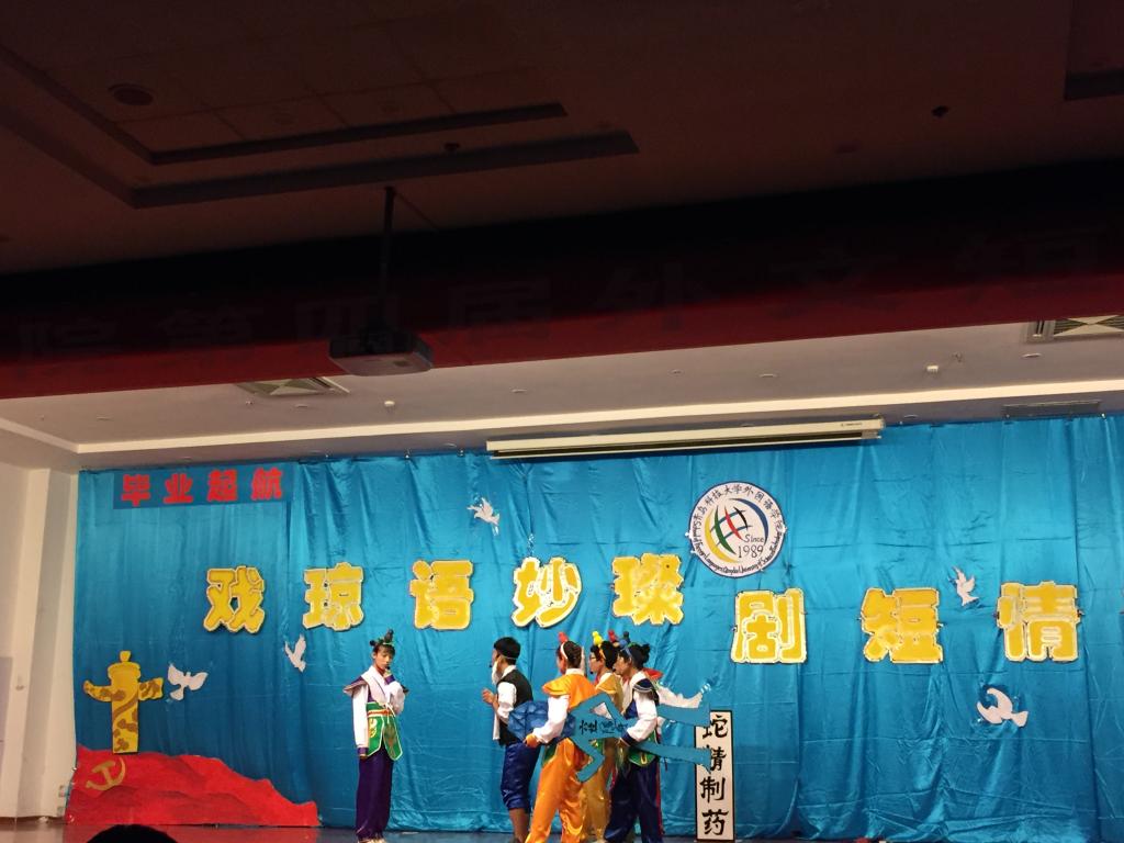 在第二报告厅举办“毕业.起航”外文短剧大赛,为毕业生召开了一场别出心裁的欢送会。滨海湾金沙赌场