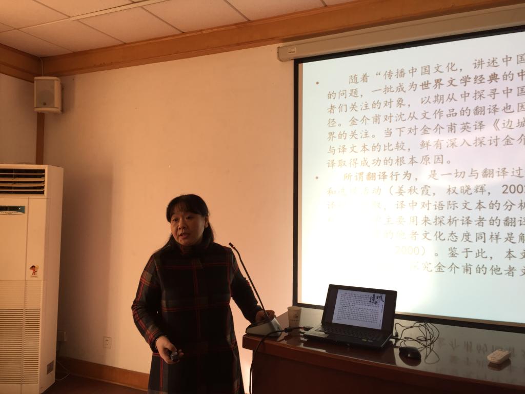 黄勤教授首先介绍了美国汉学家金介甫对沈从文的研究,解释态度与行为的关系,并指出应以态度行为理论为基础来阐述金介甫的他者文化态度对翻译行为的影响。随后,黄教授介绍了憎恶、狂热和亲善这三种他者文化态度的基本倾向,认为金介甫的“亲善”态度可以从他对作者、他者语境下的人物和文化的叙述中体现出来。紧接着黄教授用鲜活丰富的实例呈现了金介甫“亲善”的他者文化态度与其翻译行为的关系:为减少读者的阅读障碍,激活读者阅读经验,金介甫采用副文本“比附”话语的方法,内文本采用“释、增、删、补”的翻译技巧和策略。为得到西方评论界的认可,他在文体中关注作者的遣词造句,在叙事上关注作者的结构安排,并通过译者评论干预发出自己的声音。最后,黄教授指出在当前“一带一路”和中国文化“走出去”的背景下,金介甫不排斥他者文化的文化态度和翻译行为对当下中国翻译的实践具有启示意义。