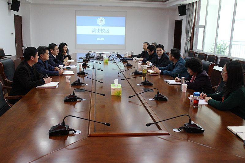 院长尹洪山、党总支书记姜德杰等一行8人到高密校区考察调研,并与高密校区领导梁树清、官杰及相关部门负责人进行了座谈交流。