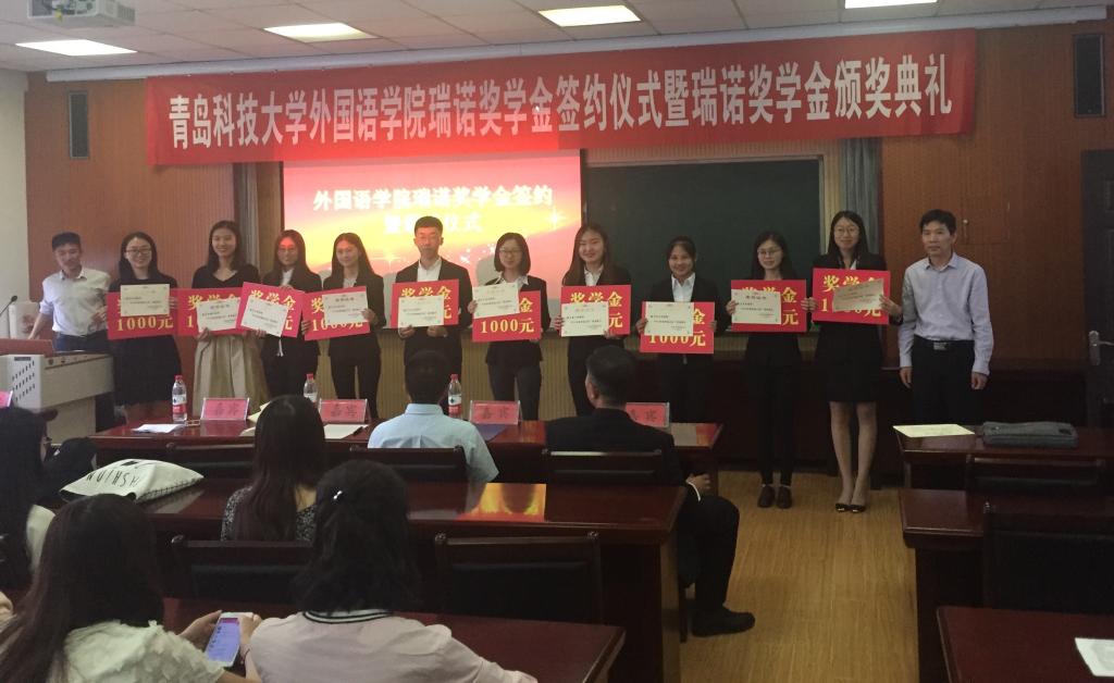 党总支副书记宋飞宣读获得瑞诺轮胎奖学金学生名单。获奖学生代表王倩发言表达了对青岛瑞诺轮胎有限公司及滨海湾金沙赌场