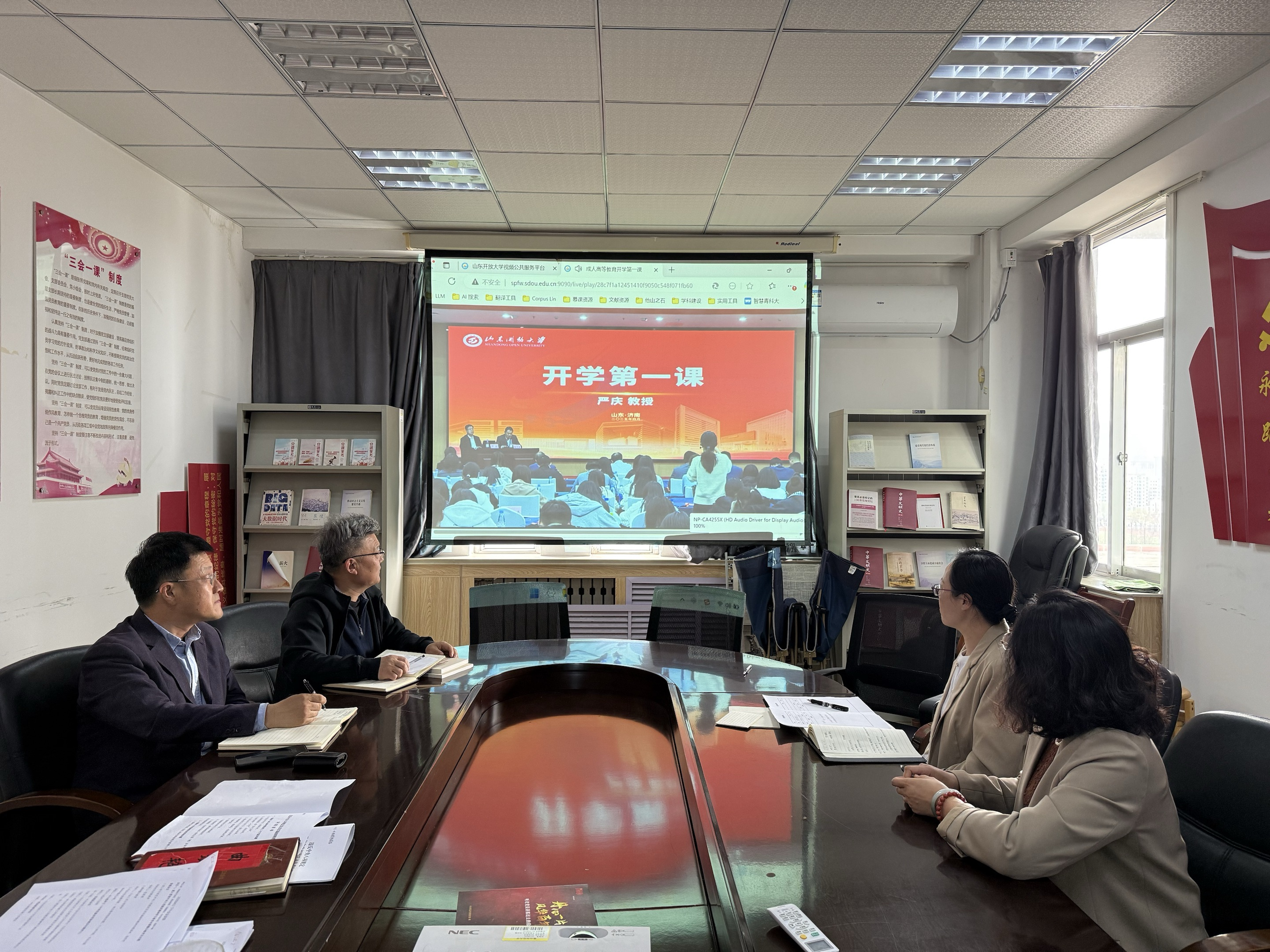 党委理论学习中心组以专题学习方式,少数民族学生以集体收看学习方式观看严庆教授主讲的《立足新时代铸牢中华民族共同体意识》专题课程直播。教师党支部、学生团支部组织师生根据实际情况同步观看课程直播。