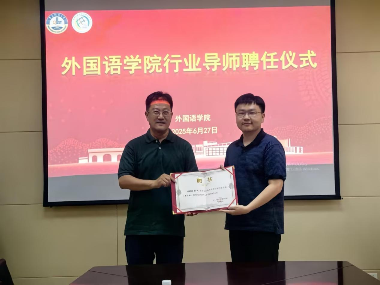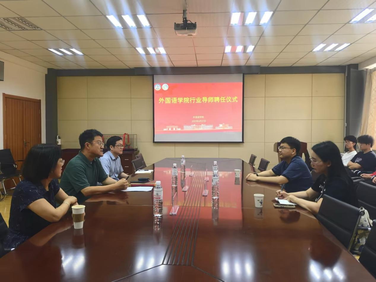 院长王灏、副院长刘靖、俄语系主任曹静娴、上合示范区代表陈娜以及俄语系师生代表共同参加行业导师聘任仪式。
