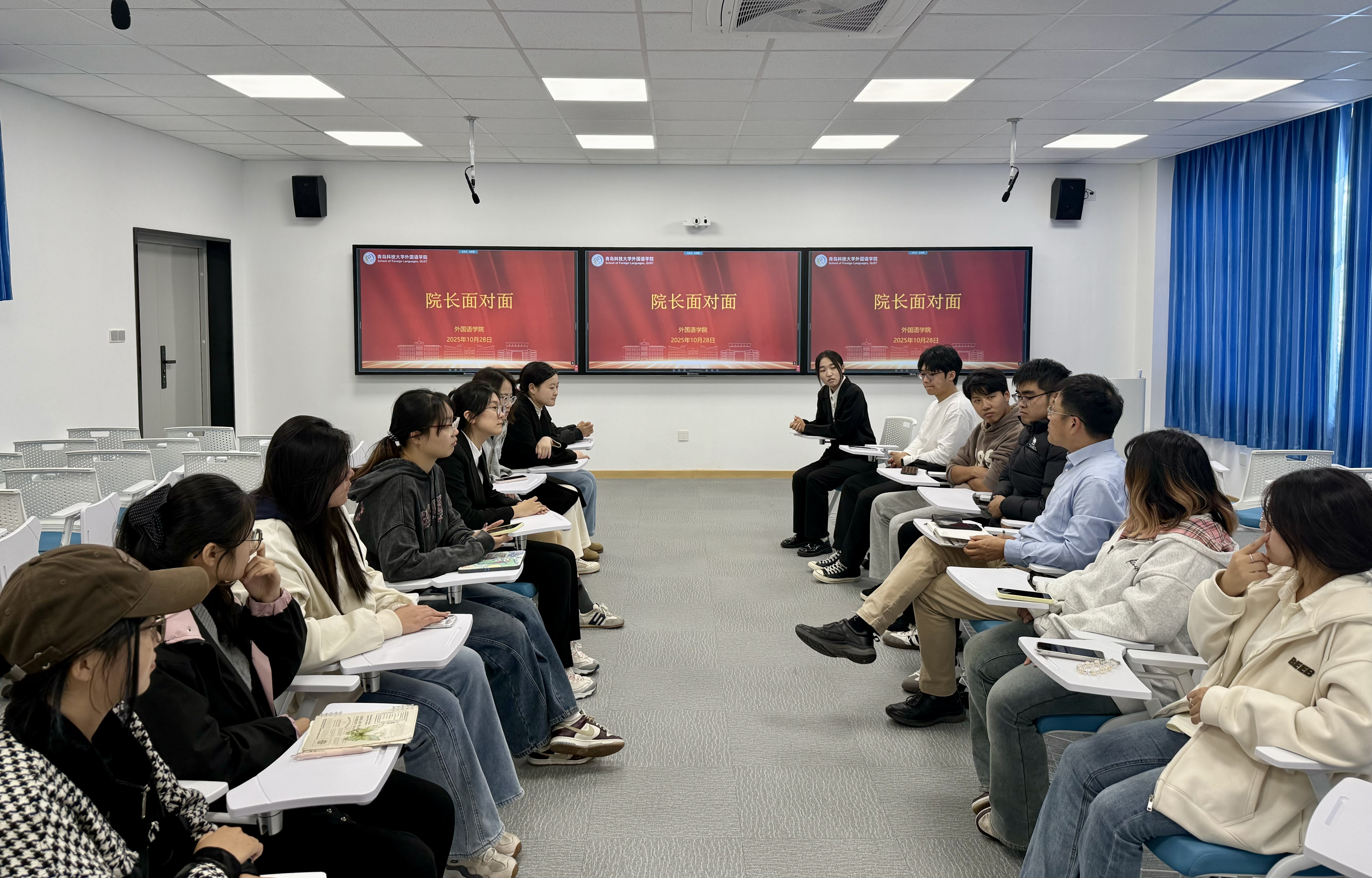 院长王灏与英语242班学生围绕学业发展、生涯规划等内容进行了深入而广泛的座谈交流。