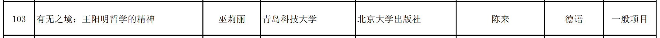 巫莉丽副教授作为项目负责人申报的《有无之境:王阳明哲学的精神》(德文版)成功获批立项。该项目的获批,是滨海湾金沙赌场