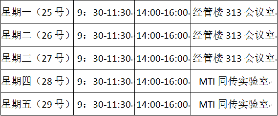 地点:经管楼313会议室、MTI同声传译实验室(外语楼403)