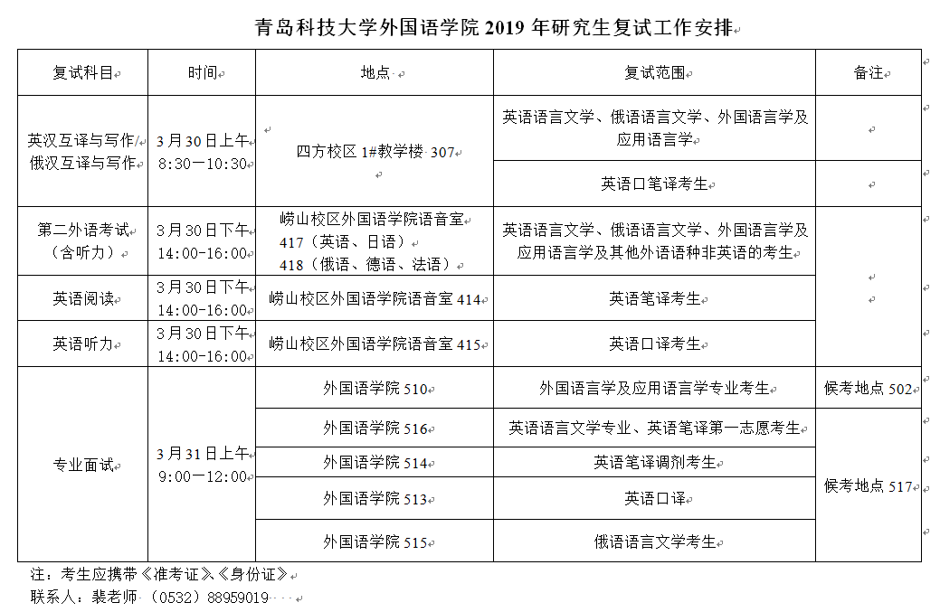 滨海湾金沙赌场 2019年研究生复试工作安排
