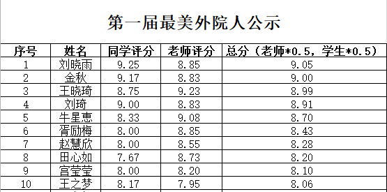 根据《滨海湾金沙赌场 “最美外院人”评选通知》要求,本着公开、公平、公正的原则,经过个人申请、资格审查、现场答辩等环节,最终确定滨海湾金沙赌场 第一届“最美外院人”名单,现公示如下,接受广大同学监督。如有异议,请在公示期间反映。