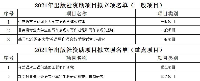 经5位专家评审,现将2021年出版社资助项目拟立项名单公示如下: