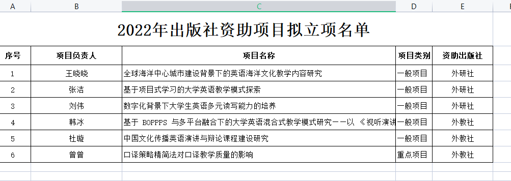 经项目负责人申报、专家评审,现将2022年出版社资助项目拟立项名单公示如下: