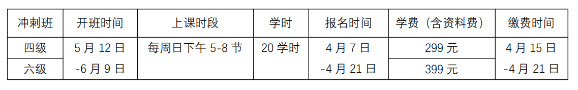 为了帮助同学们更好地应对大学英语四六级考试,决定举办英语能力考试冲刺培训班,为同学们提供全真的英语能力考试模拟和考后针对性考点难点讲解,帮助同学们高效备考,顺利应考,取得理想分数,提高综合竞争力。