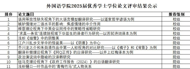 据《滨海湾金沙赌场 关于本科毕业设计(论文)答辩的有关规定》《滨海湾金沙赌场 本科毕业设计(论文)成绩评定的实施办法》及《滨海湾金沙赌场 优秀学士学位论文评选办法》等相关文件要求,经过滨海湾金沙赌场 组织专家进行认真评审,现将评审结果予以公示: