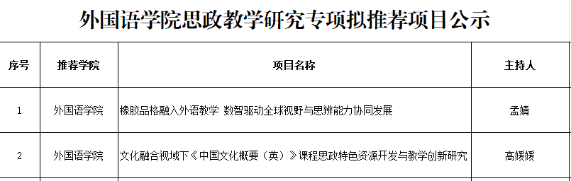 经项目负责人申报、专家匿名评审,现将2025年度思政教学研究专项拟推荐项目公示如下: