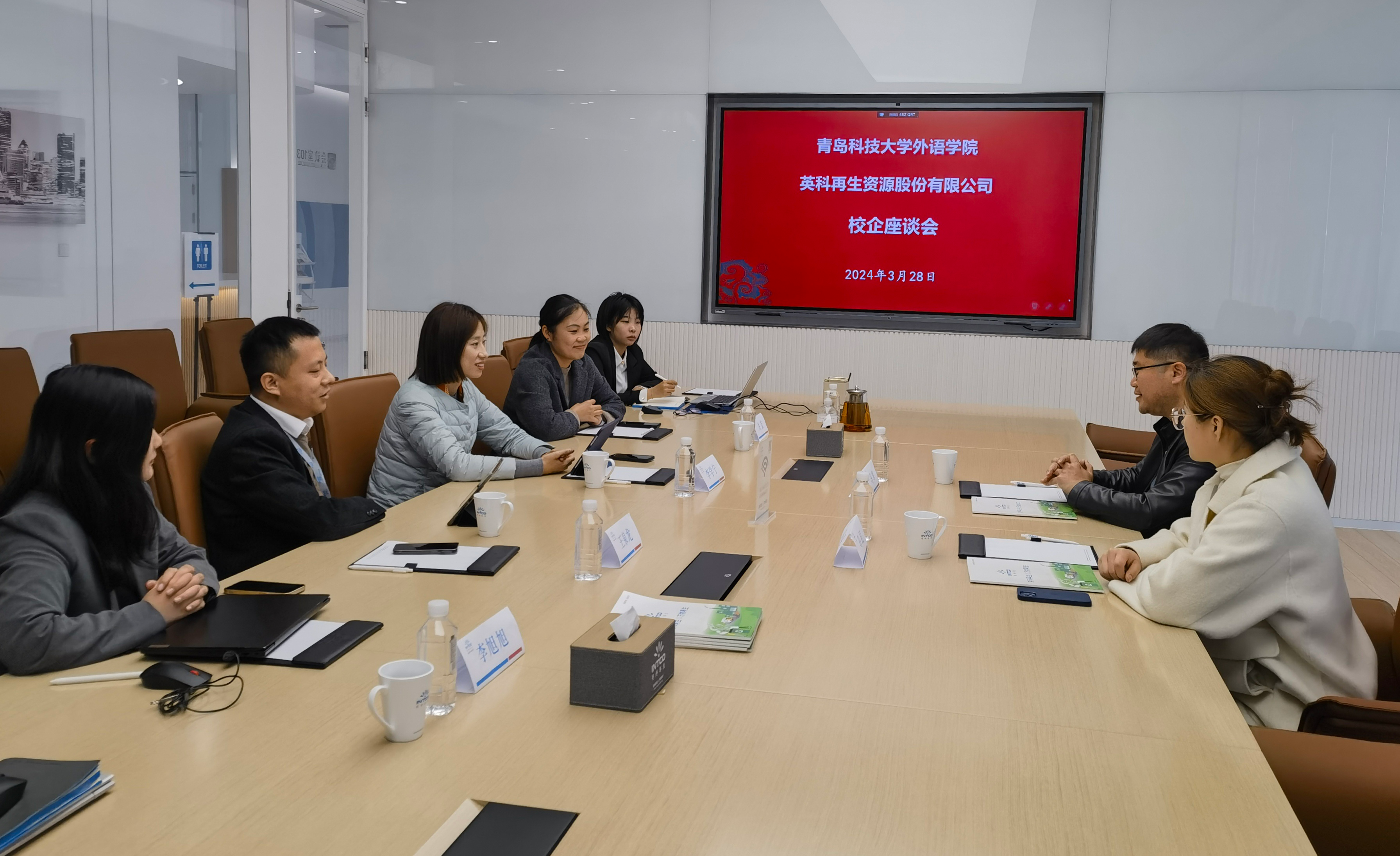 参观中,校企双方就校企合作、人才培养等方面开展深度交流。英科员工英语12届校友解春华和关莹为学弟学妹们座谈分享工作经历。