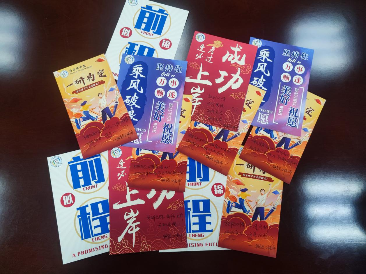 对考研学子们的亲切关怀和祝福。收到老师们精心准备的卡片,考研学子们倍感温馨、备受鼓舞,纷纷表示会全力以赴,给自己的考研之路交上一份理想的答卷。