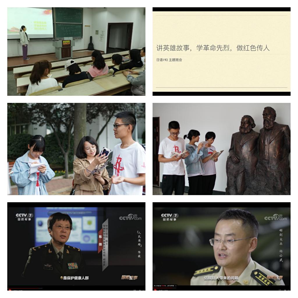 高度重视此次全民国防教育日宣传教育活动,广泛开展形式多样的宣传教育活动,通过线上、线下主题班会,线上观看国防故事纪录片、参观红色人物雕像等形式开展活动。2019级、2020级本科生以班级为单位进行“讲英雄故事、学革命先烈、做红色传人”的主题班会,同学们分享红色英雄故事,观看红色影片,学习英雄精神,传扬红色传统,充分展示新时代大学生的精神风貌。
