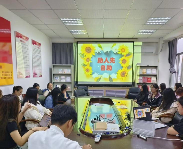 第二阶段,心语协会成员王雨鑫带领大家共同探讨心语协会的意义,明确协会使命及“助人先自助”的理念。“助人先自助”理念即:帮助他人排忧解难之前,先把自己调整到“空杯状态”,帮助他人既要有“矛”也要有“盾”,并指出大家应明确自身责任,首先懂得保护自己,其次要学会倾听,最后提高共情能力和换位思考,真正做到帮助身边的同学。同时,规划了未来工作安排,明确了具体成员分工,采用“部长+部员”模式,并制定奖惩制度以激励协会成员积极参与工作。