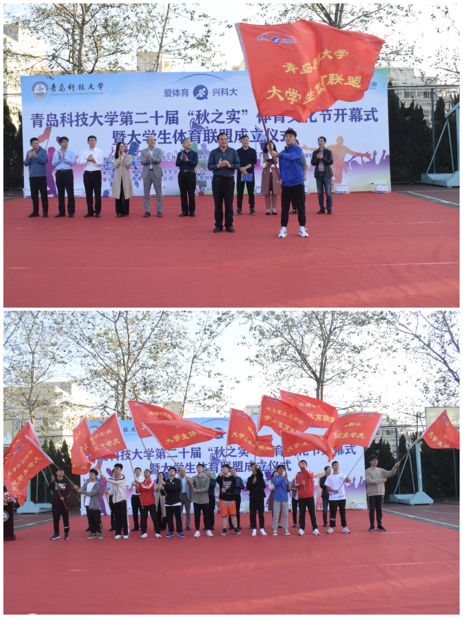 第二十届“秋之实”体育文化节开幕式暨大学生体育联盟成立仪式,在崂山校区南苑运动场正式拉开帷幕。