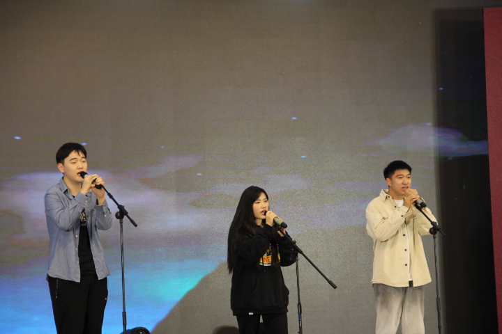 节目开始前首先播放了新生寄语、外院小故事与学生会成员风采展示三段小视频。在新生寄语中,院领导表达了对新生的热烈欢迎与殷切期望;外院小故事记录了外院学子的日常点滴,展现了新生勤奋好学,团结奋斗的良好形象;在欢快的音乐中,大屏幕还依次介绍了学生会成员。倒计时后,晚会正式开始。开场的第一个节目是韩国传统乐器演奏《四物乐》。长鼓圆鼓咚咚作响,小锣大锣锵锵齐作。在锣鼓的和鸣中,带给观众们浓浓的异国气氛,渲染了现场热烈和谐的气氛。