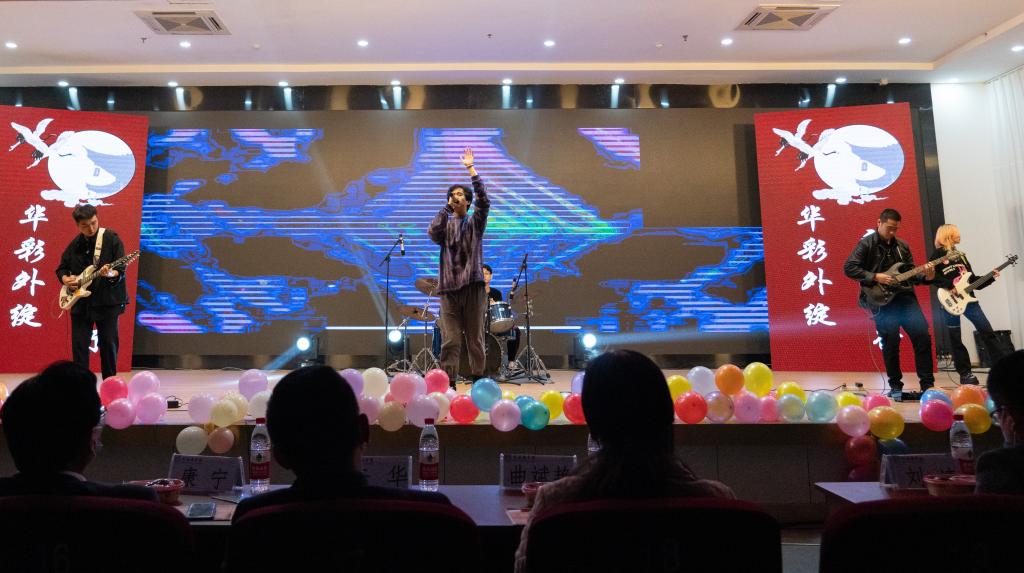 百年峥嵘,熠译生辉。晚会的第二篇章,吉协带来的歌曲《嘿,姑娘》和《南方》让全场观众举起手机闪光灯,汇成一片璀璨的星海。不同乐器,不同音色。贝斯的低沉、电吉他的高昂、架子鼓的震动和歌声的明亮,交织成和谐的乐章。