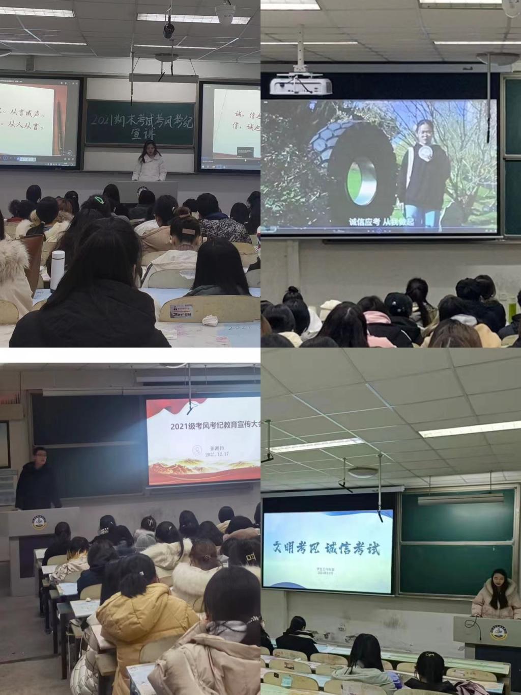 四个年级在弘毅楼教室内同时开展了2021年秋季学期考风考纪教育宣传大会。