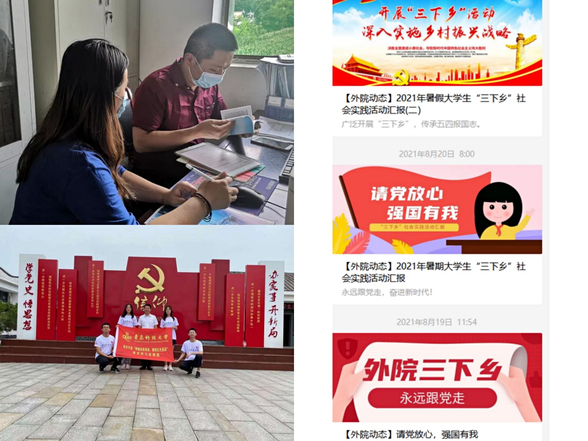 启动了以“请党放心,强国有我”为主题的2021年暑期大学生“三下乡”社会实践活动。 各班级积极响应,陆续出发,组成了“致敬改革闯将,赓续红色基因”党史学习教育实践团、滨海湾金沙赌场