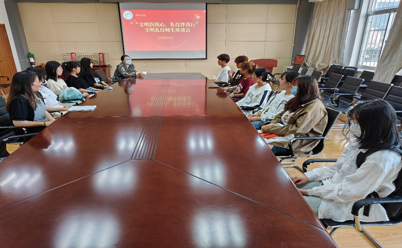 开展了文明礼仪师生座谈会,了解了学生在文明礼仪方面存在的问题,并对同学们提出了要求,希望同学们能严格要求自己,养成文明行为礼仪,从身边的小事做起,争做一名文明守纪的好学生。其中学生骨干尤其要做好表率,待人礼貌,交往和谐,语言文明,使同学之间和谐共处,有序生活。