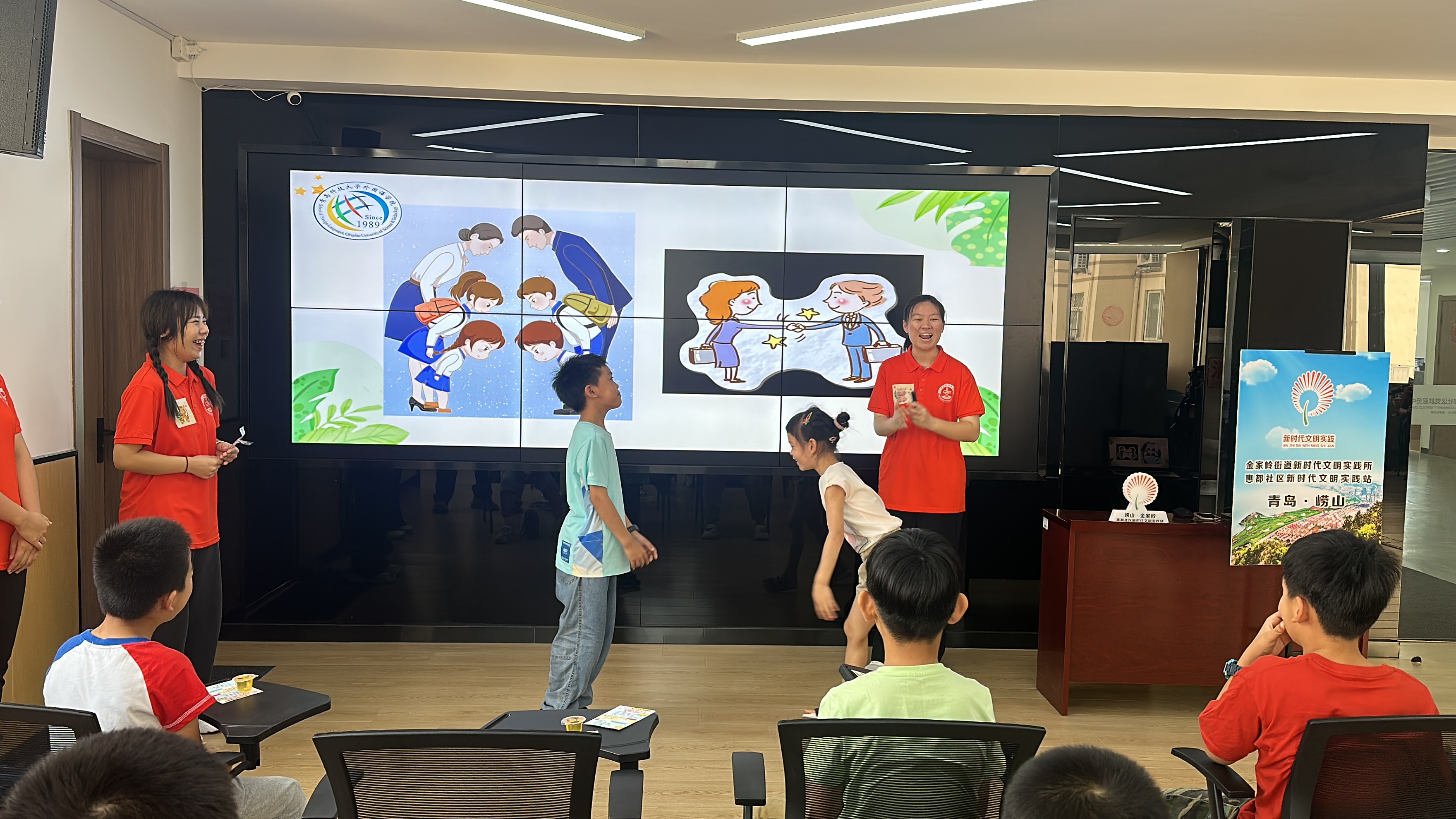 志愿者们开始“心语课堂”系列志愿服务活动,带领孩子们了解中国和英国、日本、俄国三个国家问候语的差异,体验英、日、俄三国的常见问候语,同时学习了几个孩子们感兴趣的网络热词。志愿者们在讲解的过程中,孩子们听讲认真,课堂上积极互动。通过此次活动,孩子们领略了语言的魅力,体验了异域的文化,同时也提高了孩子们对不同国家语言学习的兴趣。