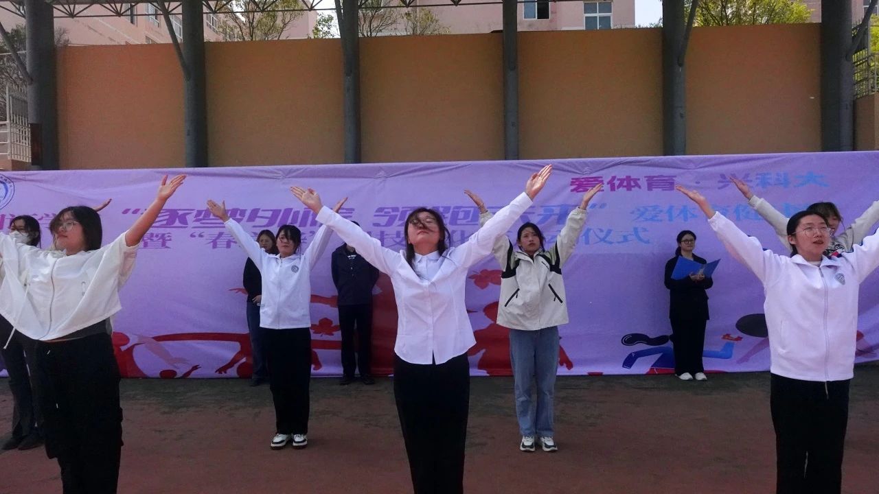 的学生代表向我们展示了广播体操,她们动作整齐划一,舞动着青春,洋溢着活力,展现着外院学子积极健康、昂扬向上的精神面貌。