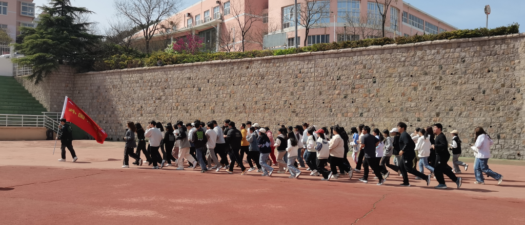 23级学生代表站成方队,由马昆老师鸣哨,一起进行健康跑打卡。
