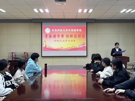 于4月28日在517会议室举办了主题为“青春谱华章,创新铸辉煌”的科创交流学术讲座活动。研究生国家奖学金获得者孟丽同学以毕业论文、学术写作、科创研究等主题为切入点,深入分享了她的学术历程与心得体悟。“外研社国才杯”英语演讲大赛全国铜奖获得者孙昕旭同学为同学们详细介绍了竞赛分类并分享参赛经验,不仅激发了同学们对学科竞赛的兴趣,也带动了同学们的学习热情,受到广泛好评。