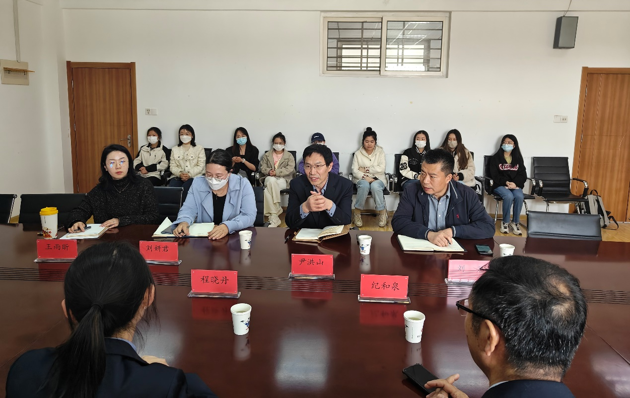 招聘宣讲,并就人才培养与建立实习基地等内容进行座谈交流。院长尹洪山、党委副书记兼副院长刘尧、学工办主任兼团委书记刘妍君、学工办副主任兼团委副书记王雨昕及30余位毕业生学生代表参加了宣讲会。