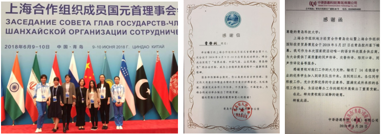 ,俄语系承担着青岛市大大小小的涉俄外事活动的翻译、语言志愿者等活动。如上合峰会前期俄语系师生参加了前期筹备工作中的翻译、语言服务等工作,峰会期间老师担任翻译,学生承担志愿者工作。从2015年开始,俄语系学生开始承担青岛市海外院士青岛行的翻译和志愿者服务工作,获得了来访院士的好评。从2018年开始,俄语系开始承担上合组织青年交流营的语言服务工作,和上合其他国家的青年一起交流思想,展望未来。其他俄语实践活动还包括上合地方经贸合作论坛、国际友好城市商品展、国际合唱大会等活动。俄语系师生在这些社会实践活动获得了主办方的认可和称赞。